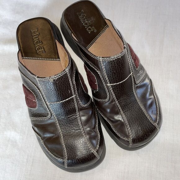 Mudd Casual Mules Women’s Size 7 Medium Brown Leather Slip On Comfort