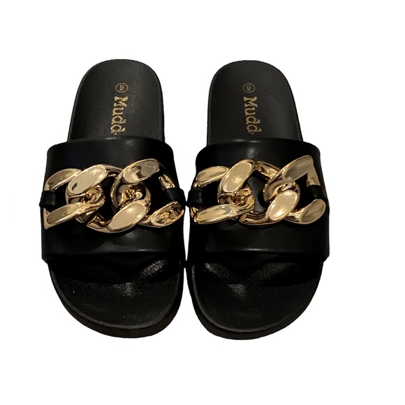 Women’s Mudd Chain slides Size:9 Color: Black/Gold Brand new! Never worn.