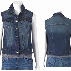 Mudd Classic Denim Vest Distressed Button Flap Pockets Button Tab Hem Size Small