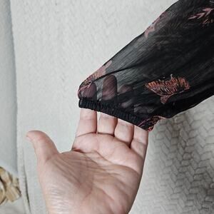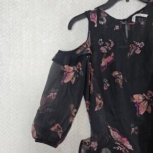 Mudd Cold Shoulder Blouse Womens XS Black Butterfly Print Sheer Boho Fairy Y2K