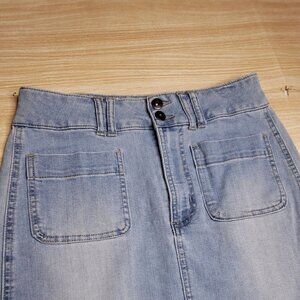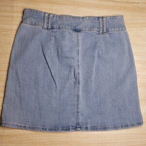 Mudd Denim women’s light wash denim skirt 5. Gently used condition. Measurements are: 15” waist, and 15 ½" length **measured flat**