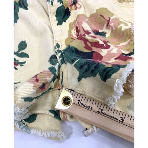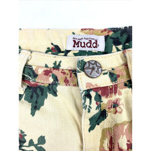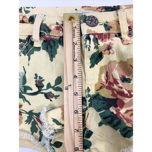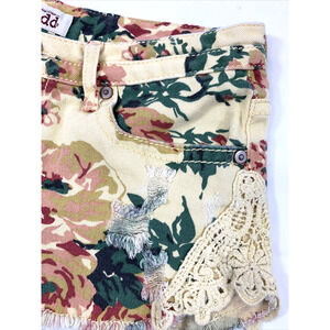 Mudd Denim Shorts Juniors 7 Yellow Floral Lace Shorttail Booty Cut Offs Distress