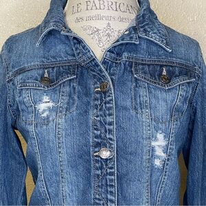 Mudd Distressed Button Up Denim Jacket Blue Size Large