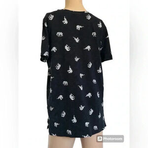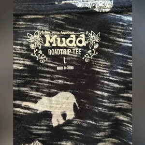 Mudd Elephant Print Roadtrip Tee V-Neck Cotton Blend Casual Short Sleeve Size L