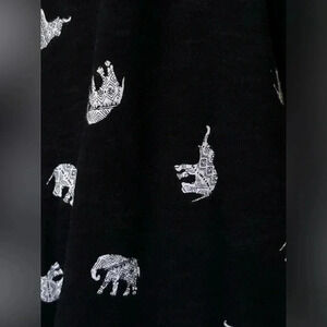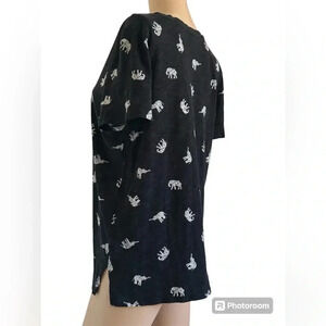 Nice cottony top by Mudd. Elephant print with a subtle split hem. Size Large. See flat lay measurements below before purchase!