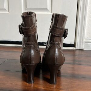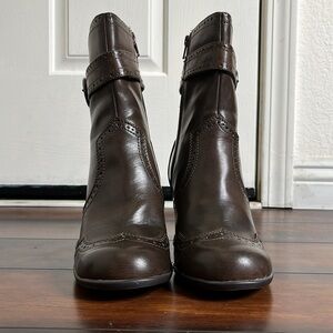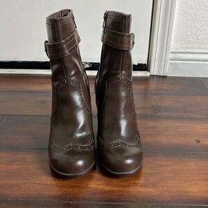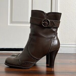 Mudd Elisa Ankle Boots Brown Block Heels Zip Wingtip Straps Buckle 9.5 M Y2K VTG
