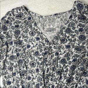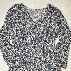 Stylish floral romper by Mudd. Features a blue and white pattern.