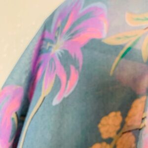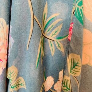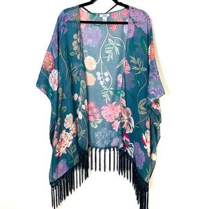 Mudd Floral Kimono Topper ONE SIZE Blue Fringe Layering Piece Boho Fairy Core