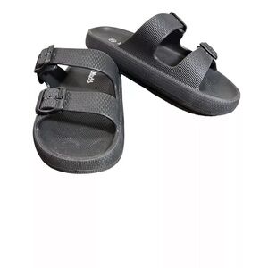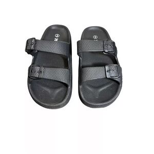 Mudd Girls Black Slip On Sandles Size 2 Open Round Toe Plain Basic Summer Beach