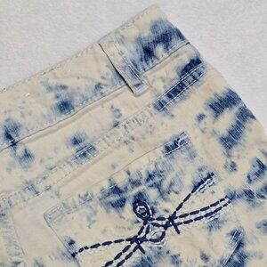 Mudd Girls Tie-Dye Denim Shorts – Adjustable Waist Raw Hem Blue & White | Sz 8