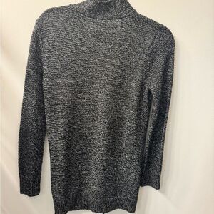 Heathered gray / black cardigan from Mudd with button up front. Pockets on each side. Long and cozy, perfect for layering.
