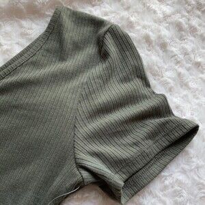 This green double v bodysuit is super soft! Has short sleeves, and a snap crotch closure. Size small