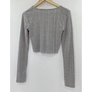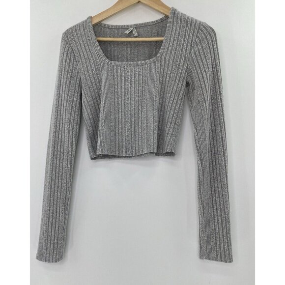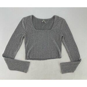 Mudd Heathered Gray Ribbed Soft Square Neck DIY Cropped Sweater Size S, Y2K