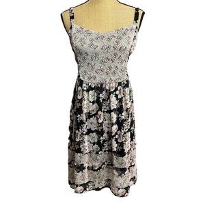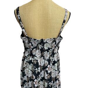 Mudd Hi-Low Smocked Sundress Size XL Dress Black Ivory Floral Stretch Adjustable
