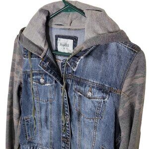 This Mudd Jean Jacket is a must-have for juniors and women. It features distressed sleeves and pockets, offering a rugged yet stylish look. It comes in a medium size and a classic blue color.