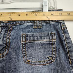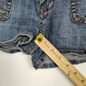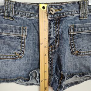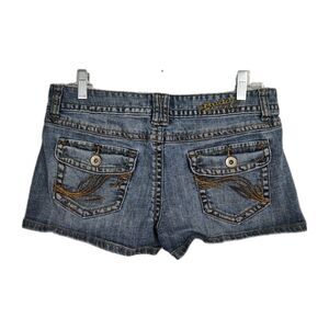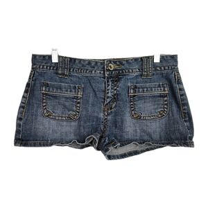 Mudd Jeans Denim Shorts Womens Size 9 Medium Blue Embroidered Pockets 2" Inseam