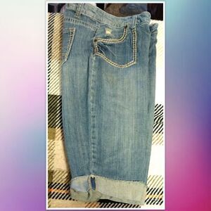 💕Mudd Jeans Low Rise Capri Distressed Cuffed, Stone Wash Blue Denim Size 13