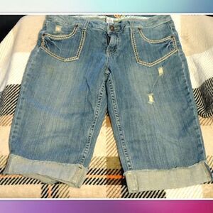 Mudd Jeans Low Rise Capri Distressed Cuffed, Stone Wash Blue Denim Size 13
