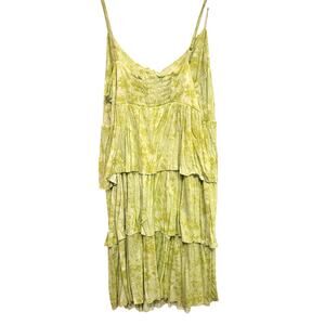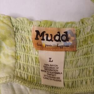 Mudd Juniors Lime Green Tiered Ruffle Floral Embroidered Adjustable Y2K Top LG