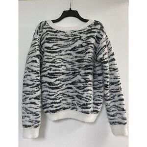 Mudd Juniors Women's White Grey Striped Long Sleeve Pullover Sweater Sz XL