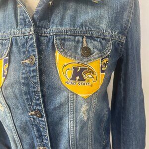 Mudd Kent State Custom Made Denim Jean Jacket Womens Medium Distressed
