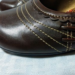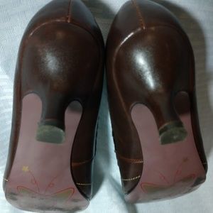 Mudd ChaCha kitten heels dark brown with gold and floral interior. Shoes are in nice condition. Only signs of wear are on the bottom of the soles. Heels measure 2 inches.