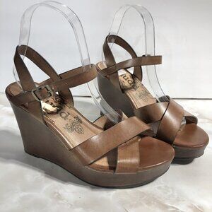 Mudd Kylie Cognac Y2K Style Wedge Brown Sandals Tan Straps Adjustable shoes Sz 7