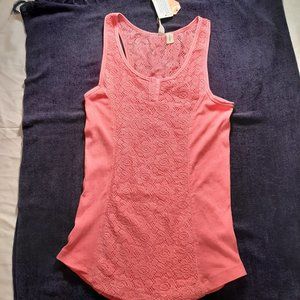 Mudd Lace Henley Tank - Juniors Coral (M)