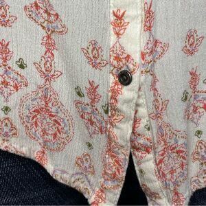 Mudd Long Sleeve Flowy White and Pink Button Down Collarless Blouse Large