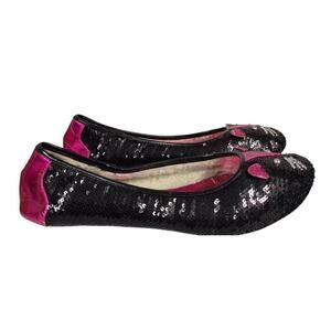 Mudd Mouse Cat Face Pink Black Sequined Ballet Flats Womens Size 9.5M Shoes