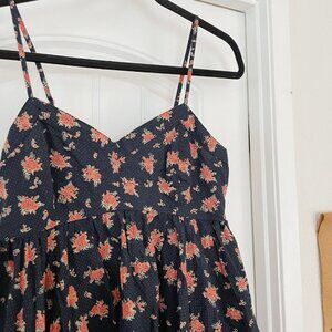 Mudd Navy & Red Dot Floral Layered Baby Doll Tank Top Blouse Medium Summer Y2K