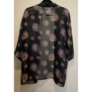 Mudd OS Sheer Black Colorful Circles Kimono Cardigan Satin Trim Beach Preppy NEW