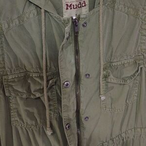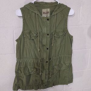 Mudd Olive Green Hooded Cotton Utility Vest with Cinch Tie Waist Juniors Sz L