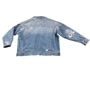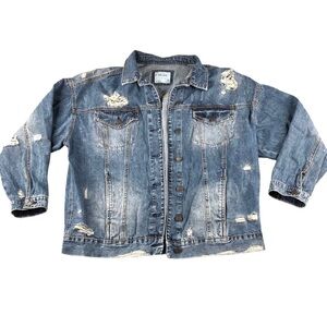 Mudd Oversized Distressed Denim Jacket with Rips and Holes