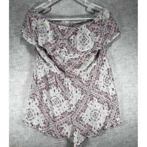 Mudd Paisley Strapless Ruffle Romper Junior XL Off Shoulder One Piece