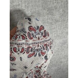 The Mudd Paisley Strapless Ruffle Romper in Junior XL size is a stylish and versatile one-piece outfit perfect for casual occasions. The off-shoulder design with ruffle accents adds a touch of sophistication, while the elastic waist ensures a comfortable fit. Made from lightweight rayon material, this romper is ideal for warmer seasons like summer, fall, and spring. The multicolor paisley pattern adds a fun and trendy twist to the overall look, making it a great choice for travel or everyday wear.