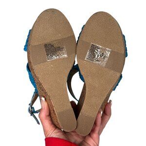 Mudd Peep-Toe Blue Platform Cork Wedge Sandals Womens Boho US Size 7.5 M