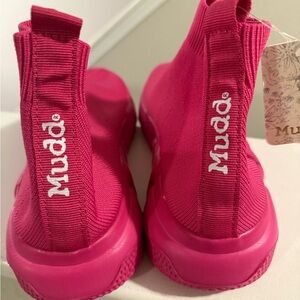 These Mudd sneakers feature a vibrant pink color and a sock-like knit upper for a snug, comfortable fit. The slip-on design is complemented by a chunky, molded sole, making them perfect for both style and everyday wear. A pull tab at the heel ensures easy on and off, while the minimalist design offers a modern, sporty look.