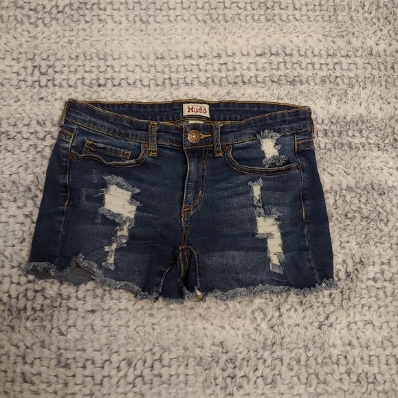 Mudd Brand, size 7, dark wash, distressed denim, ripped jean shorts, like-new, smoke-free home