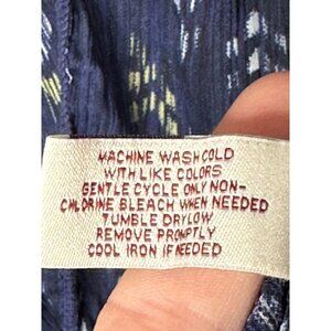 This Mudd blouse in XS offers a stylish boho print in navy blue. Made from sheer polyester, it features short puff sleeves and a tie front for a lightweight and flowy fit. EUC.