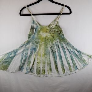 Mudd Vintage Babydoll Tank Top Medium Green Y2K Floral Fairy Flowy 90s Butterfly