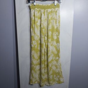 Mudd Women Pants S Colorful Wide Leg Side Slits Beachy Boho Tropical Cottagecore