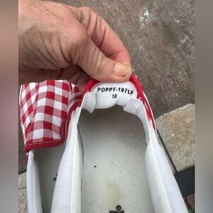 Mudd Womens 10 Poppy-197L Slip On Flats Checkered Comfort White Red Canvas