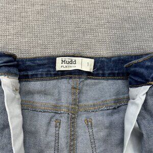 Mudd Womens Blue Distressed Denim Skirt Button Front FLX Stretch 5 Pocket Size 1