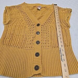 Mudd Womens Chunky Open Knit Cardigan Sweater Sz L Yellow Boho Short Sleeve