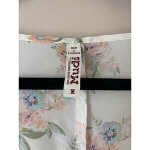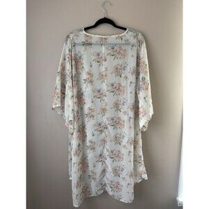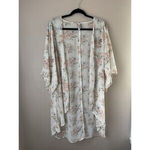 Mudd Women’s Floral Kimono Cardigan Beige Sheer Boho Lightweight Cover-Up