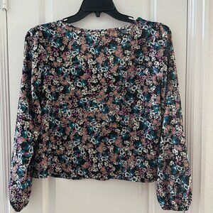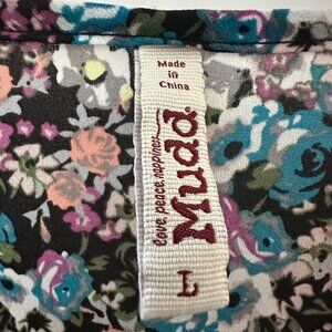 Mudd Womens Floral Long Sleeve Blouse Size L Black/Pink/Blue 100% Polyester Made