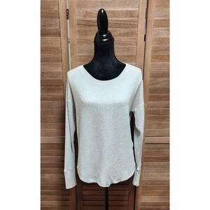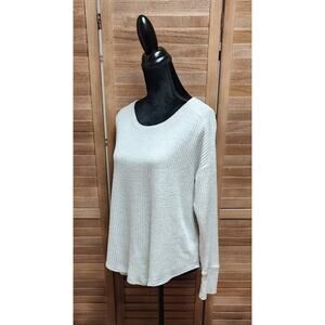 Mudd Women's Gray Long Sleeve Pullover Waffle Thermal Top Round Neck Size Medium