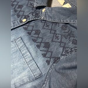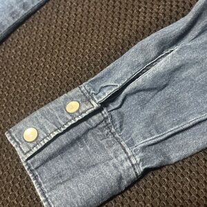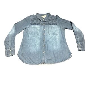 Mudd Women’s L Denim Pearl Snap Button Down Embroidery faded Western Long Sleeve
