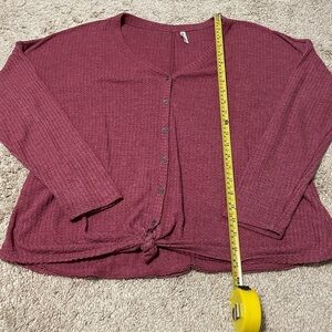 Mudd Pink Waffle Knit Long Sleeve Button Tie Front Raw Hem Top